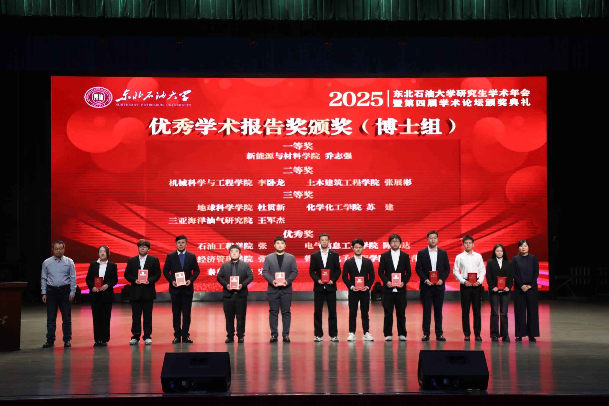 经专家评审,最终评选优秀学术论文奖博士组8名、硕士组22名;优秀学术报告奖博士组11名、硕士组23名;专业实践杰出奖6名、优秀奖10名。地球科学学院、石油工程学院、化学化工学院、物理与电子工程学院、马克思主义学院获优秀组织奖。