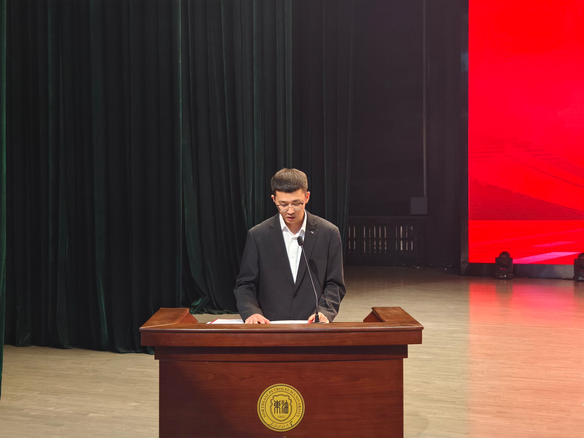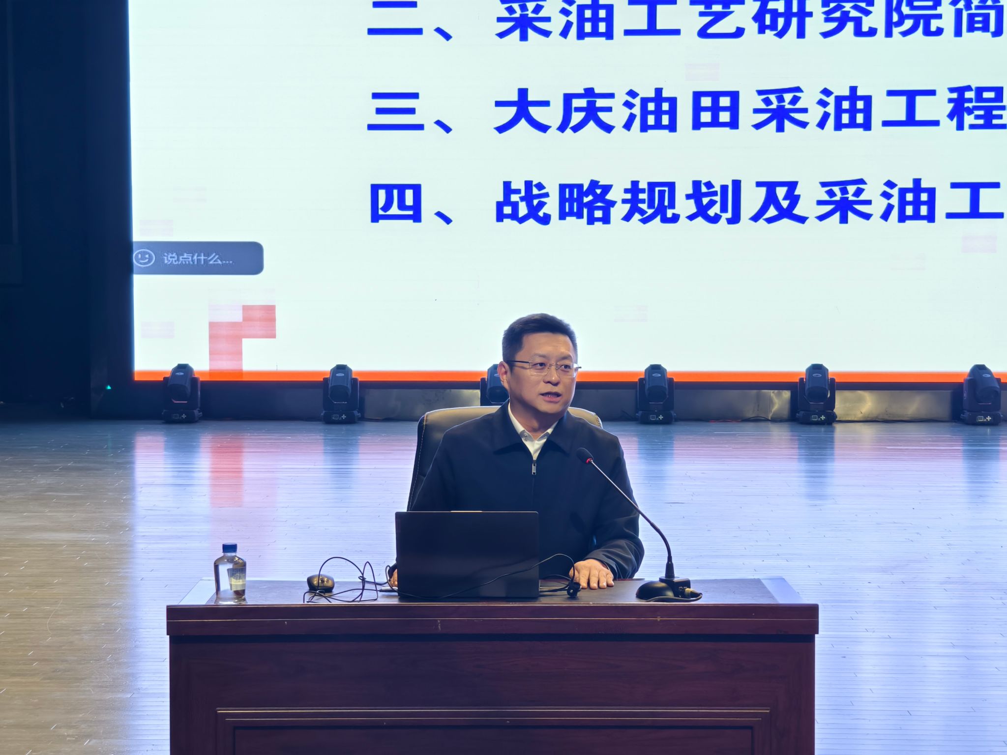 付秀丽以《解锁金色宝藏——古龙页岩油的突破与未来》为题,通过生动的科普形式揭开了古龙页岩油的神秘面纱,激发了同学们矢志能源报国的科研热情;李万鹰以《大庆精神及其时代价值》为题,引领同学们深刻感悟其精神内涵,进一步筑牢理想信念的根基;潘哲君以《非常规油气和碳埋存:在科研中成长》为题,结合自身学习、工作及科研经历,为同学们的成长路径指明了方向;蔡萌以《大庆油田采油工程战略规划及发展》为题,深度剖析了油田采油工程的技术脉络与战略蓝图。